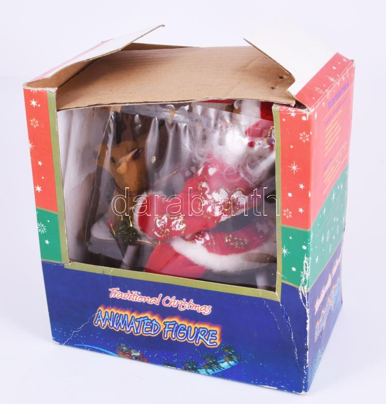 Leírás: Elemmel működő zenélő mikulás, sérült dobozában, m: 22 cm