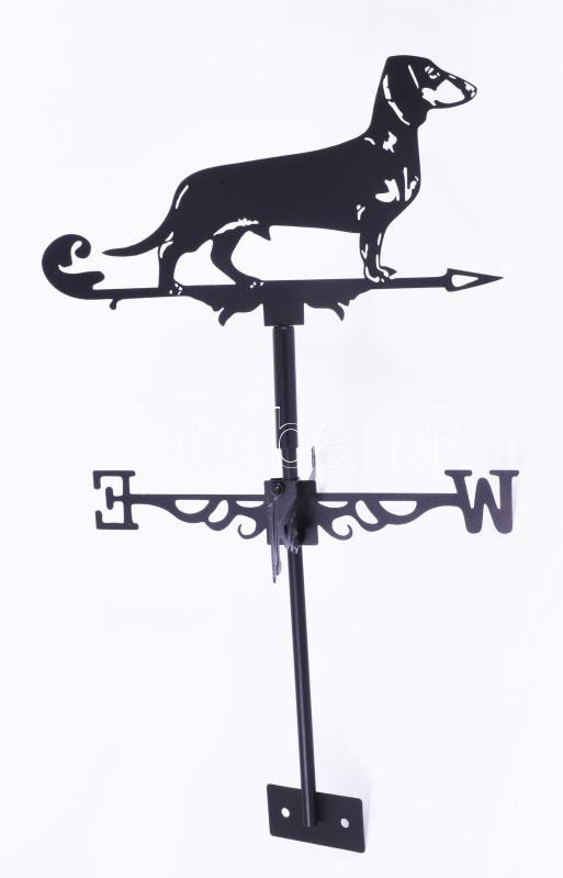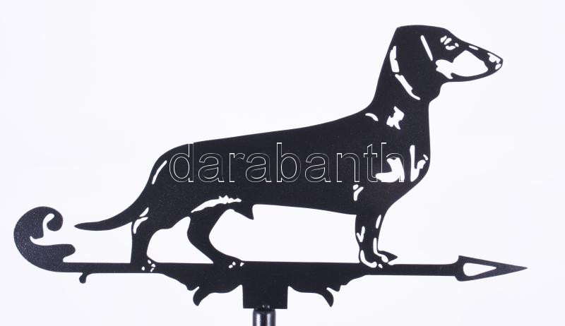Leírás: Fém szélkakas, tetején tacskó figurával, 2 részből áll, hibátlan, m: 42 cm