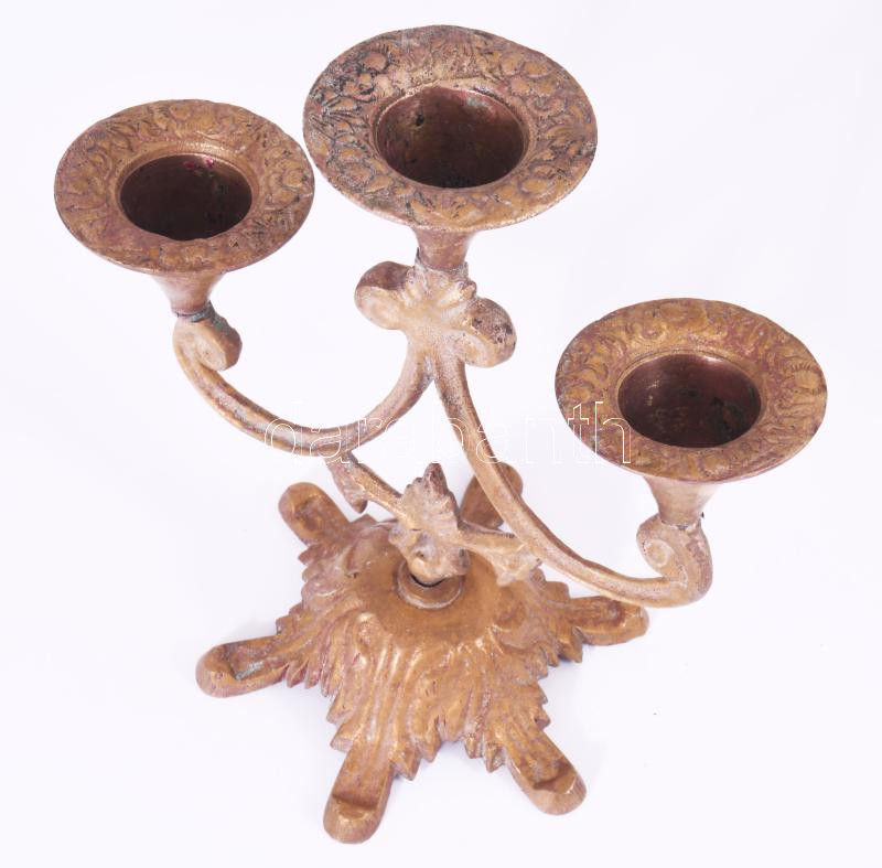Leírás: Háromágú réz gyertyatartó, m: 15 cm