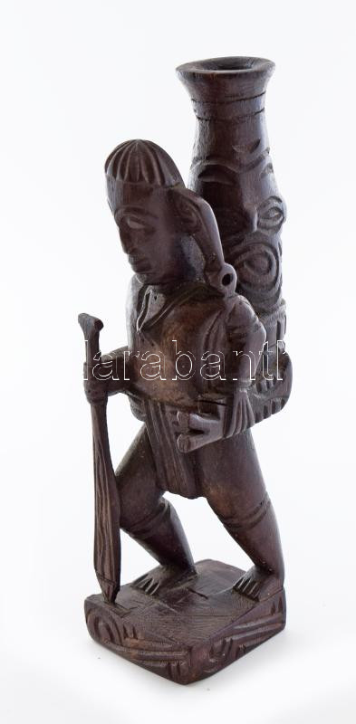 Leírás: Keleti faragott vándor szobor, m: 20,5 cm
