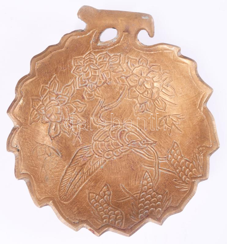 Leírás: Keleti madármintás bronz dísztál, d: 13 cm