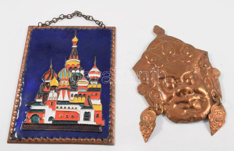 Leírás: Orosz zománc kép 18 cm + mongol réz falidísz