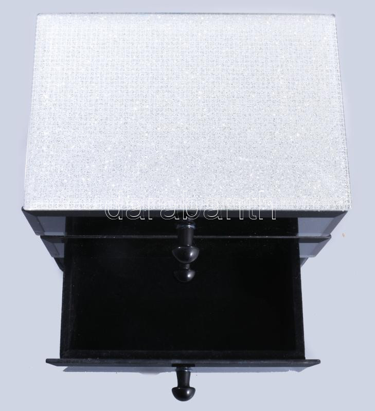 Leírás: Tükörlap oldalakkal háromfiókos ékszeres doboz, 17x11x14 cm