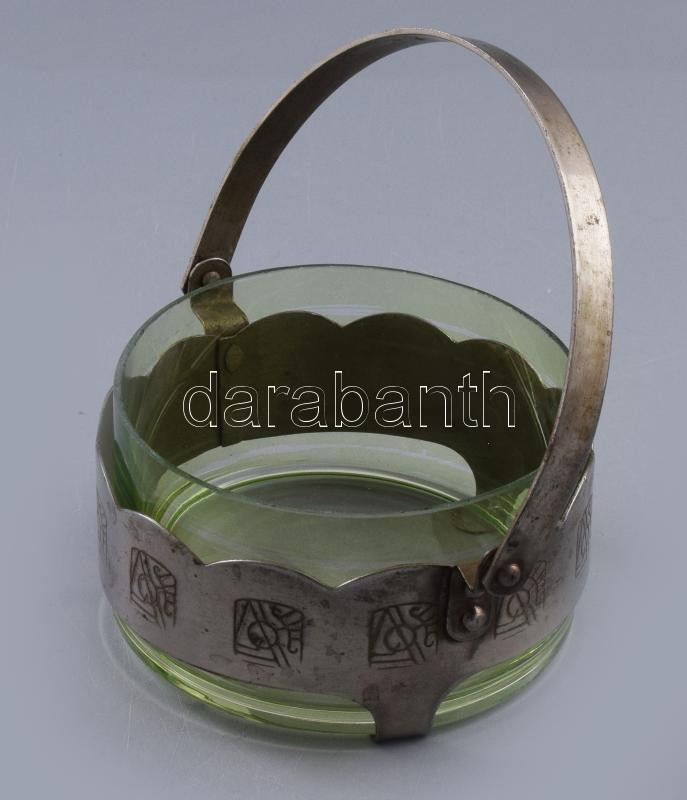 Leírás: Vintage cukorkakínáló, üvegbetéttel, kis pattogzással, d: 14 cm
