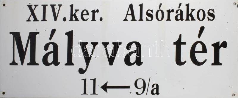 cca 1980/90 Nagyméretű zománcozott fém utcatábla, "XIV ker. Alsór... https://www.darabanth.com/hu/514-Filatelia-kepeslap-numizmatika-mutargy-konyv-papirregiseg-ekszer-aukcio/515.0/Mutargy-papirregiseg-egyeb/Bolhapiac~92/cca-198090-Nagymeretu-zomancozott-fem-utcatabla-XIV-ker-Alsorakos-Malyva-ter-11-9a-fe~II3452003