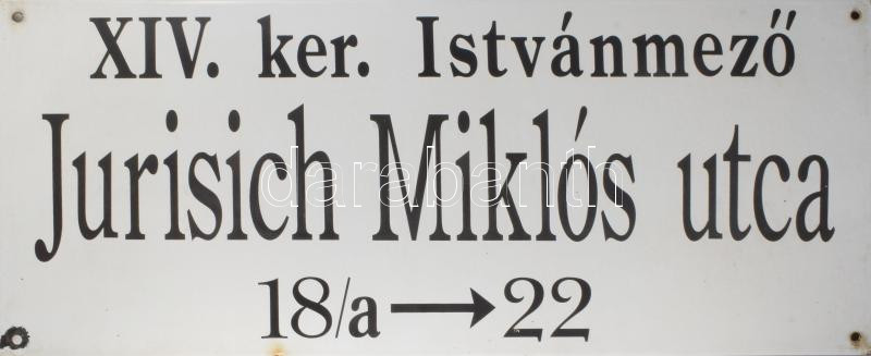cca 1980/90 Nagyméretű zománcozott fém utcatábla, "XIV ker. Istvá... https://www.darabanth.com/hu/514-Filatelia-kepeslap-numizmatika-mutargy-konyv-papirregiseg-ekszer-aukcio/515.0/Mutargy-papirregiseg-egyeb/Bolhapiac~92/cca-198090-Nagymeretu-zomancozott-fem-utcatabla-XIV-ker-Istvanmezo-Jurisich-Miklos-utca-~II3452004