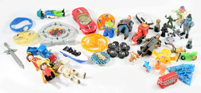 Leírás: Kis doboznyi vegyes játék tétel, figurákkal.