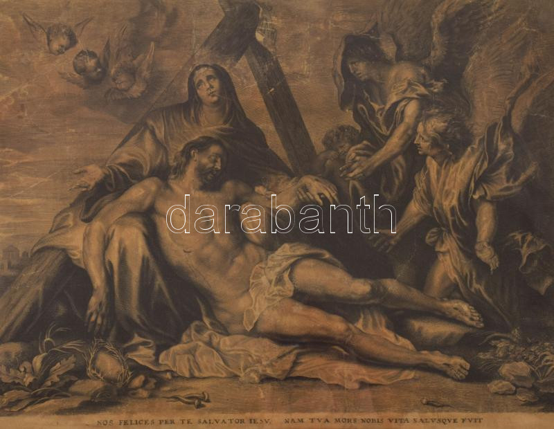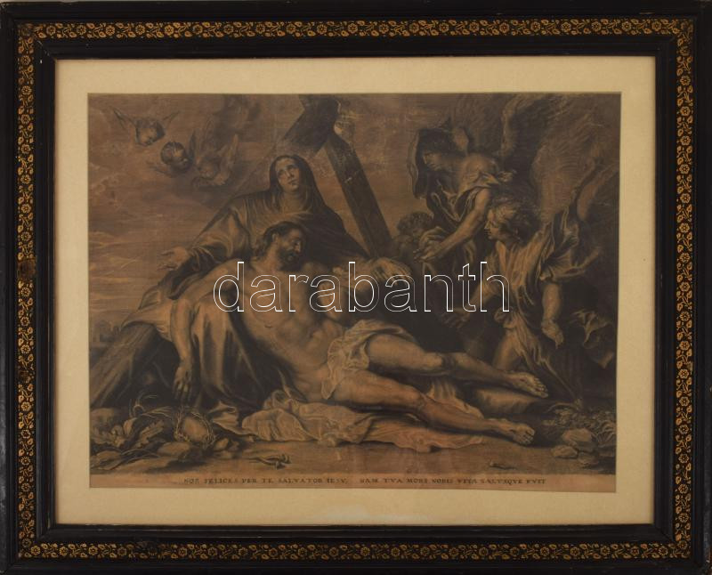 cca XVIII. sz. vége-XIX. sz. eleje, Krisztus levétele a keresztrÅ‘l, rézmetszet, papÃr, paszpartuban, dekoratÃv, üvegezett fakeretben, a kereten kisebb sérülésekkel, látható: 32,5x42 cm, külsÅ‘ méret: 47,5x57 cm