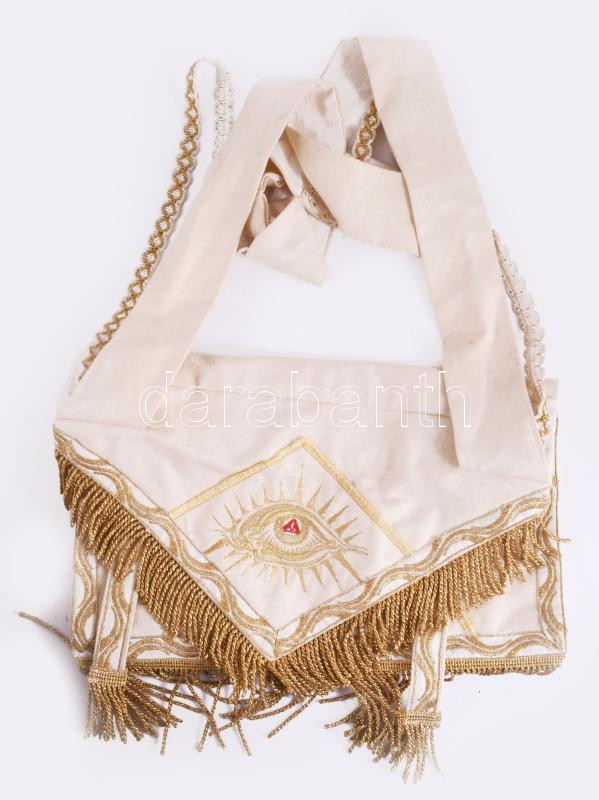 Leírás: Szabadkőműves kék páholy mesteri kötény, megkímélt állapotban, kb. 43x34 cm // Freemason Blue Lodge Master's apron