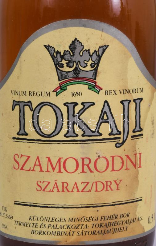 1988 Tokaji szomorodni édes, bontatlan palack fehér desszertbor, Tokaj... https://www.darabanth.com/hu/514-Filatelia-kepeslap-numizmatika-mutargy-konyv-papirregiseg-ekszer-aukcio/515.0/Mutargy-papirregiseg-egyeb/Muzealis-borok-italok~96/1988-Tokaji-szomorodni-edes-bontatlan-palack-feher-desszertbor-Tokajhegyaljai-AG-0-5-l~II3459588