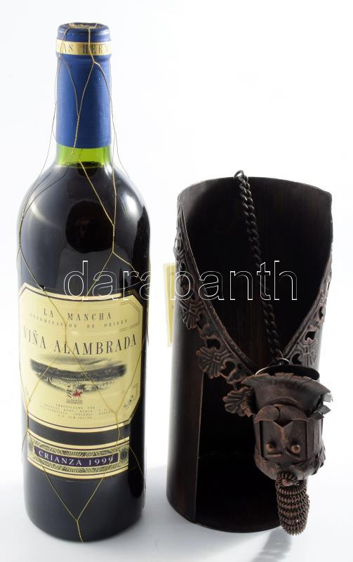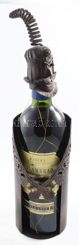 Leírás: Vina Alambrada Crianza 1999 bontatlan palack spanyol vörösbor, hozzá, iparművész réz vitézt ábrázoló bortartóval