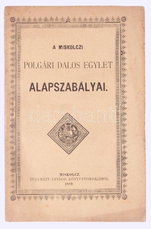 1889 A Miskoczi polgári dalos egylet alapszabályai. 16p. https://www.darabanth.com/hu/514-Filatelia-kepeslap-numizmatika-mutargy-konyv-papirregiseg-ekszer-aukcio/515.0/Mutargy-papirregiseg-egyeb/Nyomtatvanyok~83/1889-A-Miskoczi-polgari-dalos-egylet-alapszabalyai-16p~II3474333