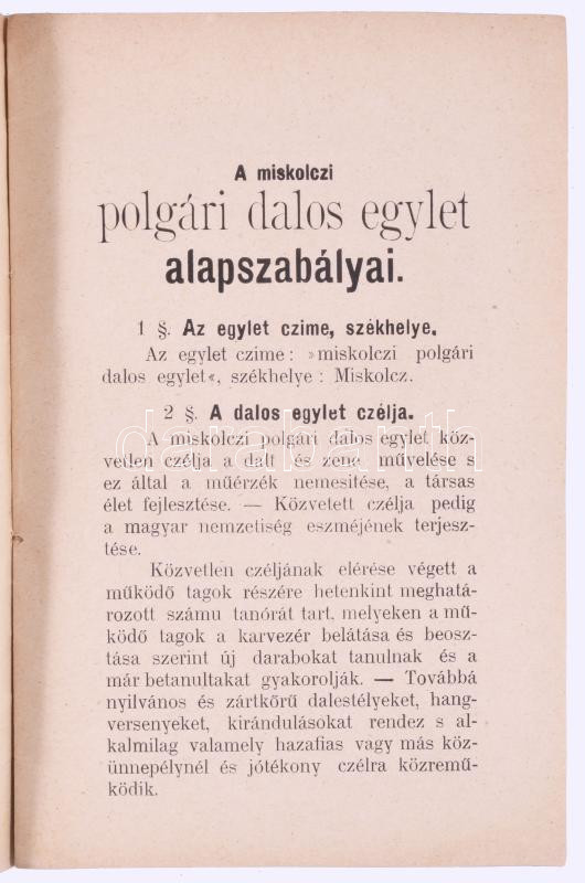 Leírás: 1889 A Miskoczi polgári dalos egylet alapszabályai. 16p.