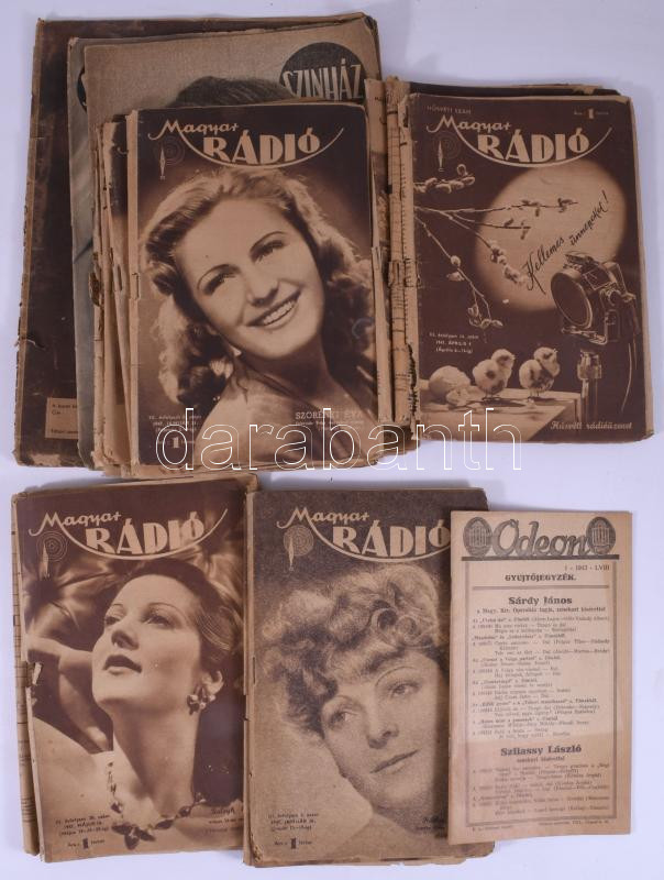 Leírás: 1940-1947 Vegyes újság tétel: Magyar Rádió, Színház, Film-Színház-Irodalom, stb., összesen kb. 20 db, változó állapotban, sérülésekkel