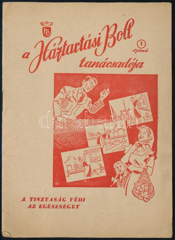 Leírás: cca 1950 A Háztartási Bolt 1. számú tanácsadója. Bp., Szikra-ny., 8 p. Kiadói tűzött papírkötés, a borítón kis szakadással.