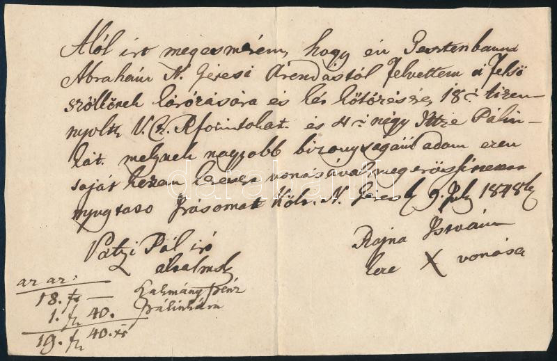 Leírás: 1848 Magyar nyelvű kézzel írt számla