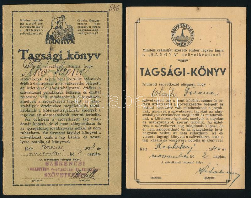 1923-1940 Hangya szövetkezet tagsági könyvek, 2 db https://www.darabanth.com/hu/514-Filatelia-kepeslap-numizmatika-mutargy-konyv-papirregiseg-ekszer-aukcio/515.0/Mutargy-papirregiseg-egyeb/Okmanyok~68/1923-1940-Hangya-szovetkezet-tagsagi-konyvek-2-db~II3475052