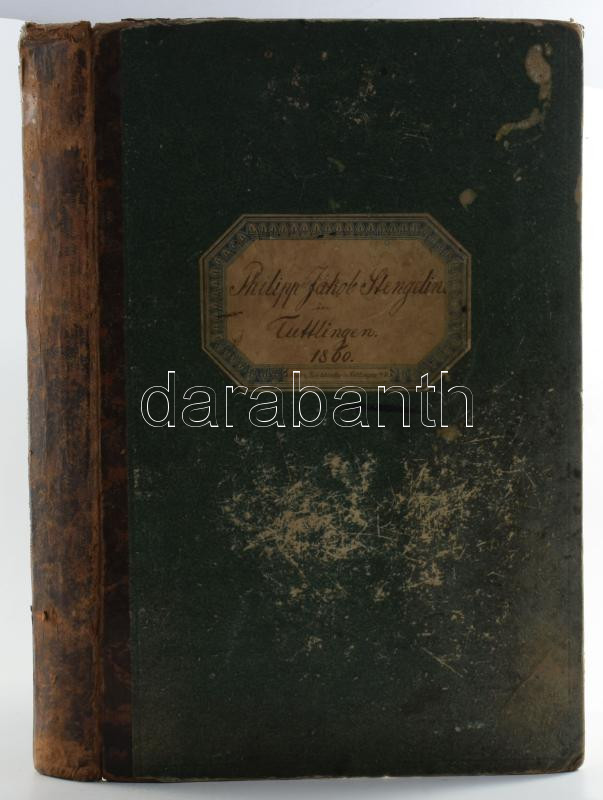 cca 1860-1920 Philipp Jakob Stengelin Tuttlingen, régi német nyelvű pénztárkönyv, kb. 90-100 oldalnyi bejegyzéssel, félbőr-kötésben, viseltes borítóval és gerinccel, helyenként foltos, kijáró/hiányzó lapokkal, 33,5x22,5 cm