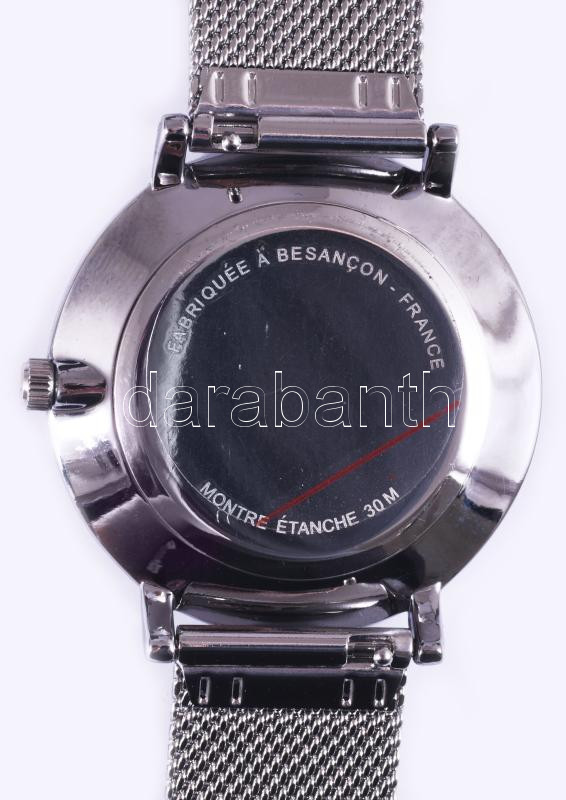 Leírás: AMD fém tokos karóra, fém szíjjal, kvarc, díszdobozban, d: 38mm