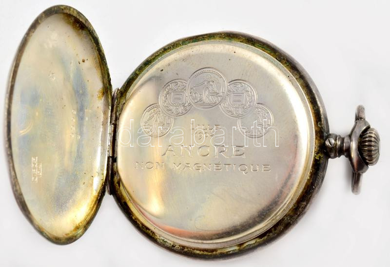 Leírás: Reym ezüst (Ag) tokos zsebóra, hiányos, d: 4,5 cm, bruttó 61g