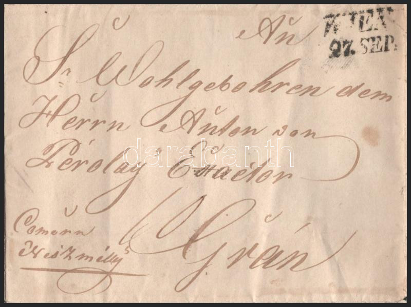 Leírás: 1837 Bécsből Esztergomba küldött, német nyelvű levél, nemes Paczolay Antal (Anton von Paczolay) részére címezve, M. Stern & Sohn aláírással