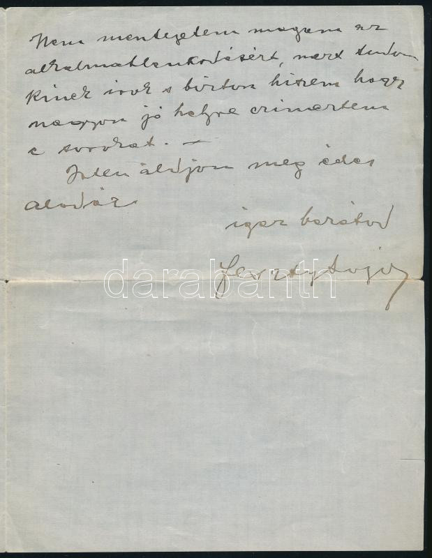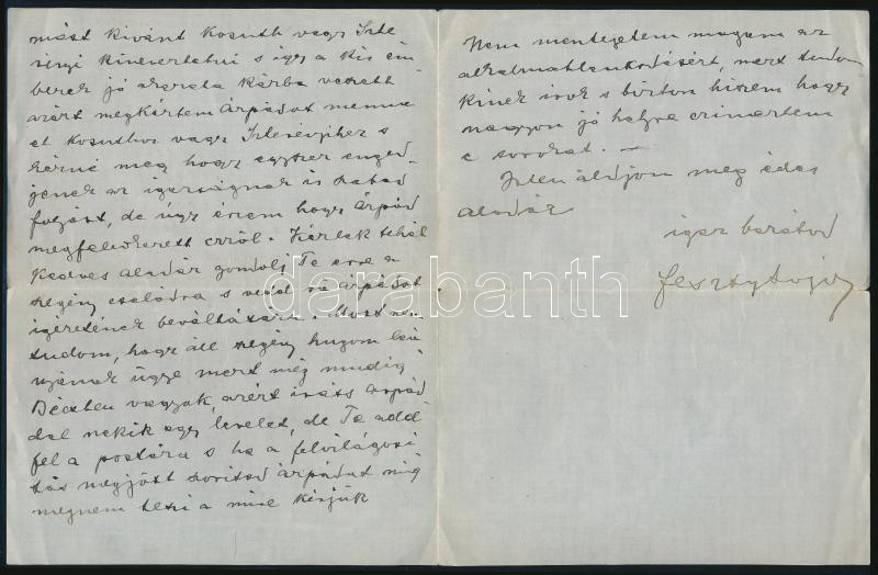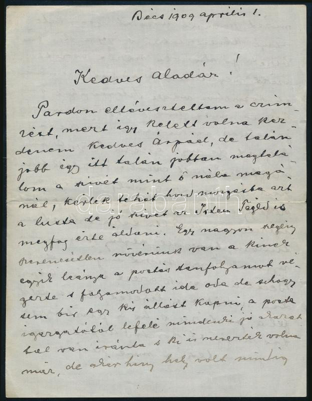1909 Bécs, Feszty Lajos (1852-1930) ügyvéd, Feszty Árpád (1856-1914) festőművész és Feszty Adolf (1846-1900) építész testvérének saját kezű levele Ihász Aladár (1886-1960) színész, rendező, drámaíró részére, "Kedves Aladár!" megszólítással, 2 és fél beírt oldal