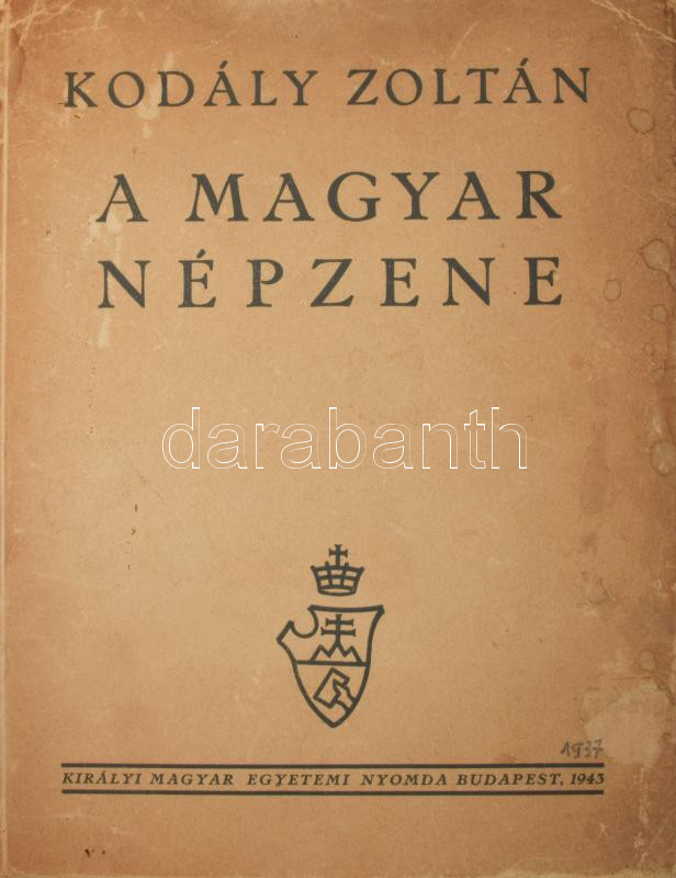 Kodály Zoltán: A magyar népzene. Bp., 1943, Kir. M. Egyetemi Nyomda, 7... https://www.darabanth.com/hu/514-Filatelia-kepeslap-numizmatika-mutargy-konyv-papirregiseg-ekszer-aukcio/515.0/Mutargy-papirregiseg-egyeb/Zenetortenet-Kottak-Hangszerek~80/Kodaly-Zoltan-A-magyar-nepzene-Bp-1943-Kir-M-Egyetemi-Nyomda-75plus1-pplus-XII-t-Masodik-k~II3441806