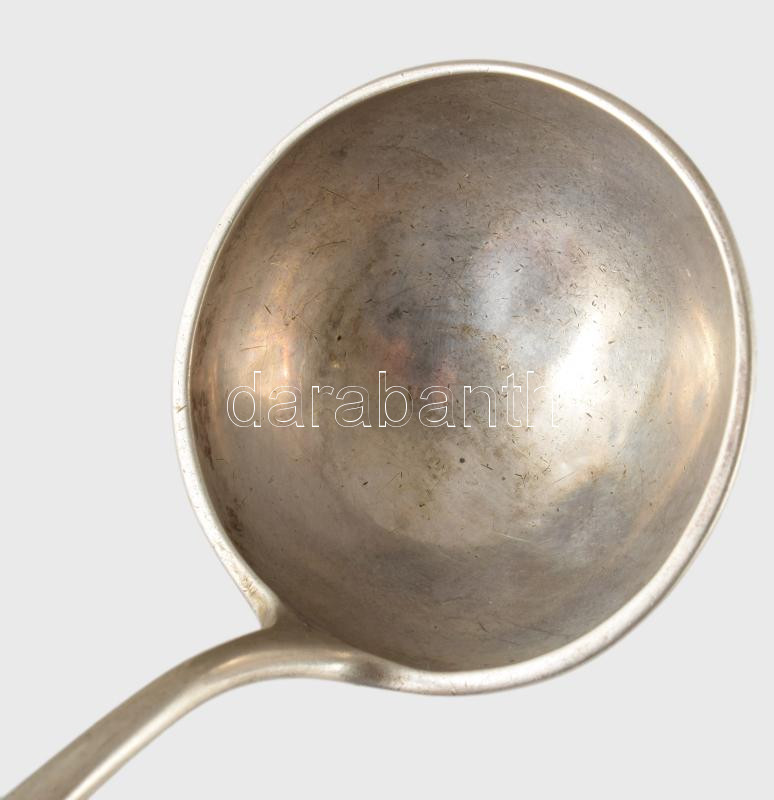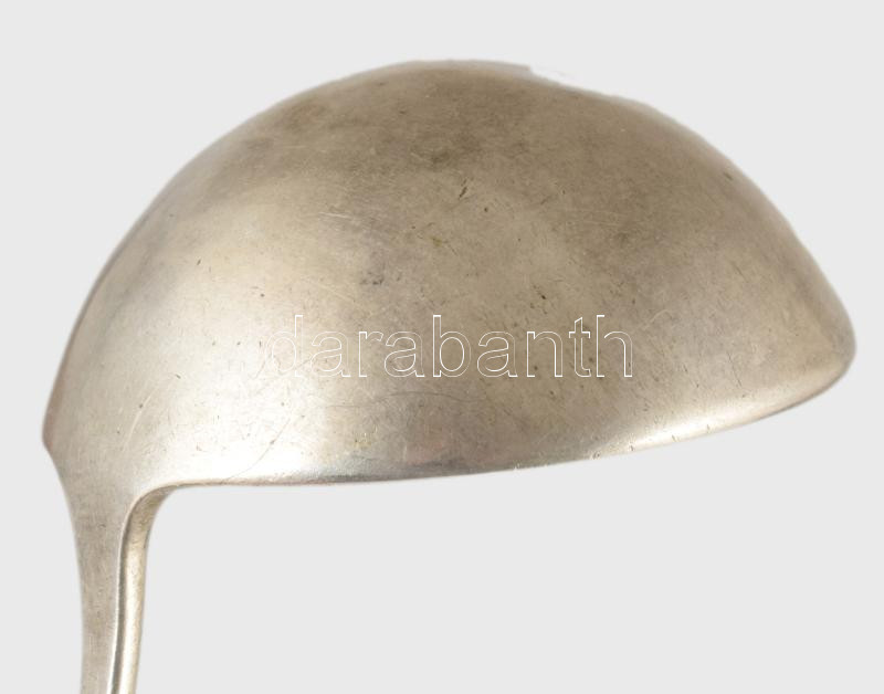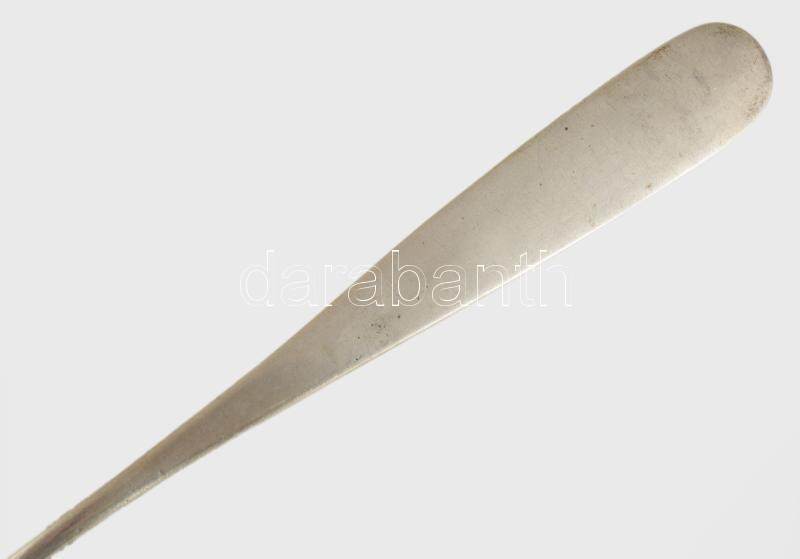 Leírás: Antik ezüst tejmerő kanál Pest, 1860. 13 latos finomságjelzéssel, CsP. mesterjeggyel, jelzett 111 g 23 cm