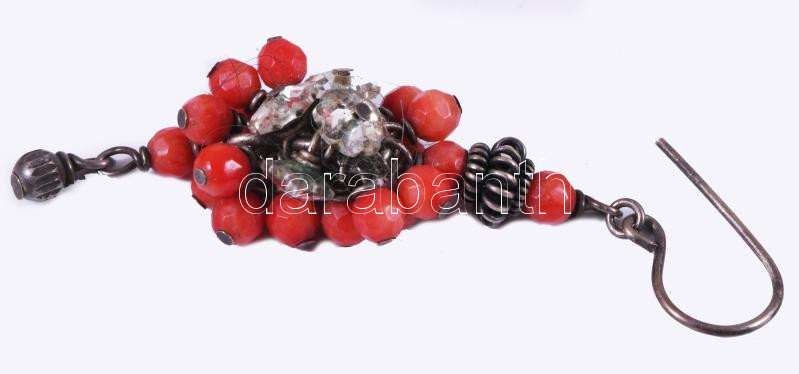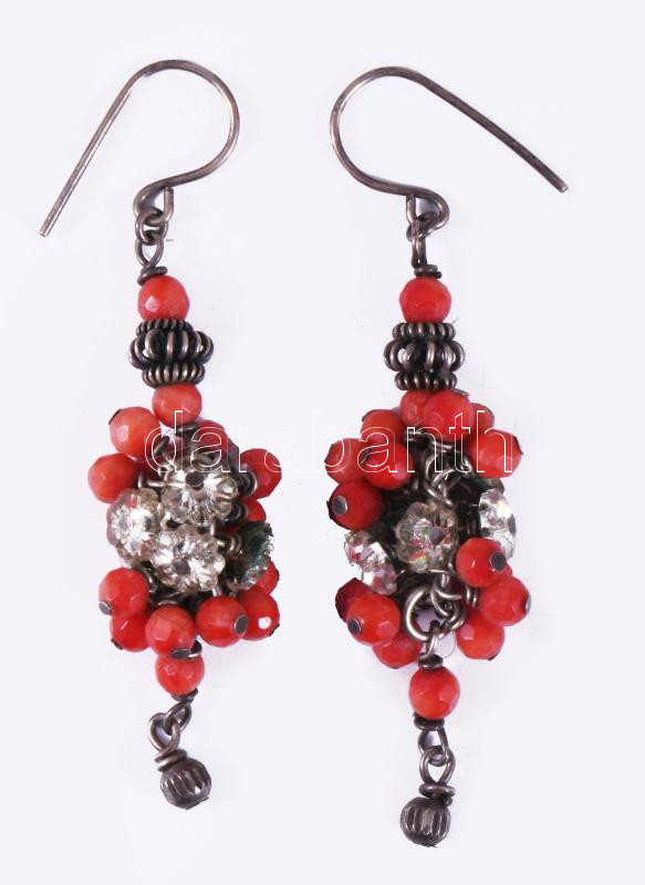 Leírás: Ezüst (Ag) fülbevaló pár, jelzés nélkül, korallal, bruttó 9g