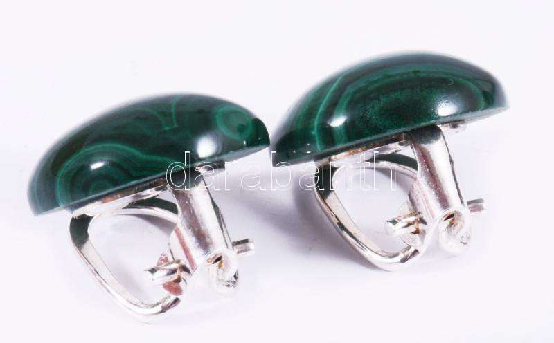 Leírás: Ezüst (Ag) fülklipsz malachittal, jelzett, d: 1,5 cm, bruttó: 7,8 g