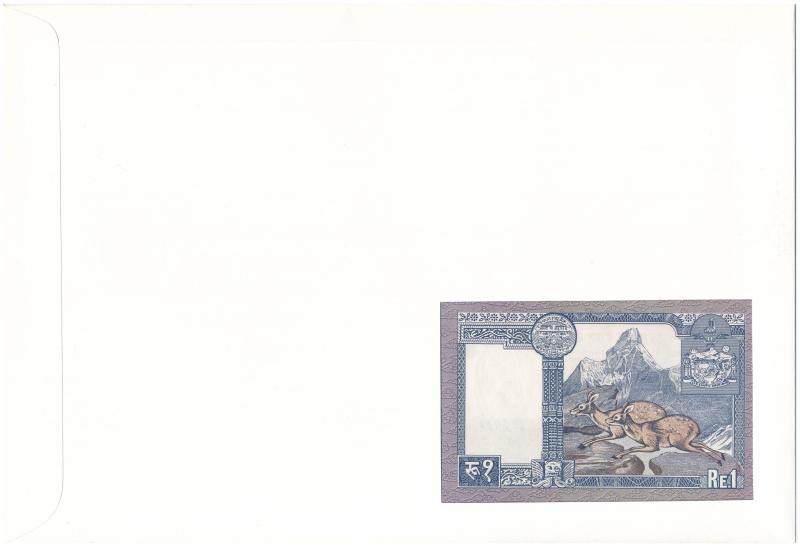 Nepal ND (1988-1990) 1 Rupees in envelope with stamp and cancellation C:UNC