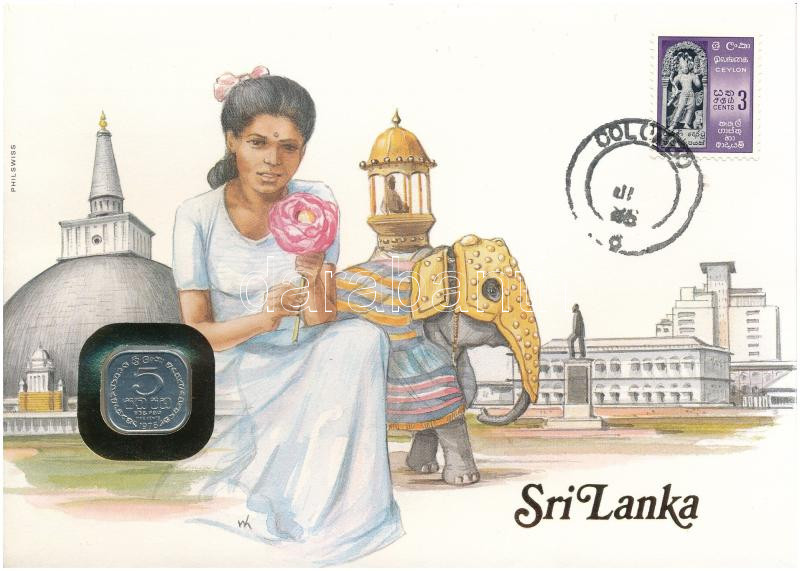 Sri Lanka 1978. 5 Cents in envelope with stamp and cancellation, with German description C:UNC