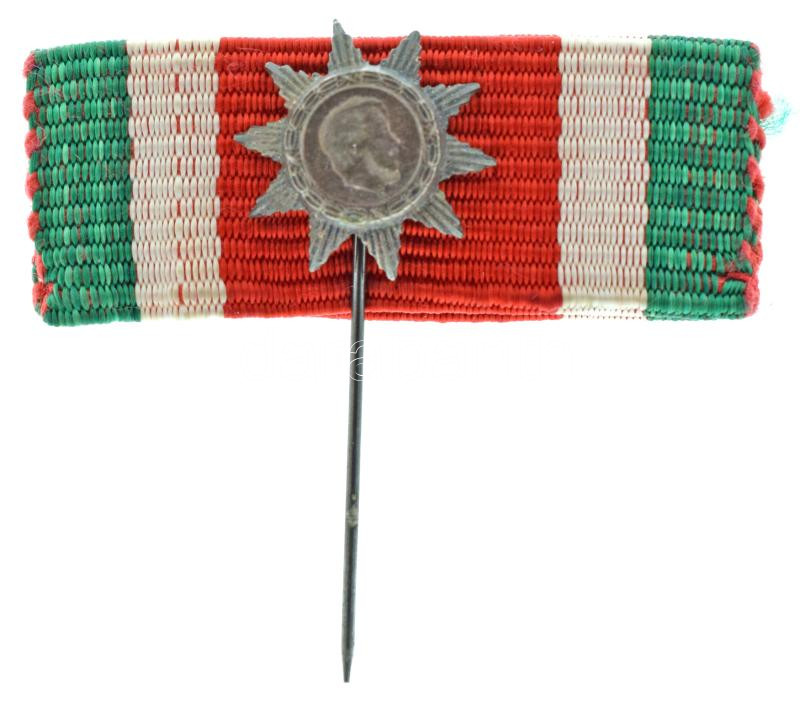 1947. "A Magyar Szabadság Érdemrend ezüst fokozata" kitüntetés bronz miniatűr kitűzője, szalagsávba tűzve TXF