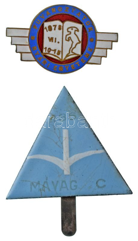 1978. "Fuvaroztatók Nyári Egyeteme - 1978 VII. 10-15." bronz, zománcozott jelvény (44x27mm) + DN "MÁVAG C 136" zománcozott fém jelvény, zománchiba (44x50mm) T:AU-VF