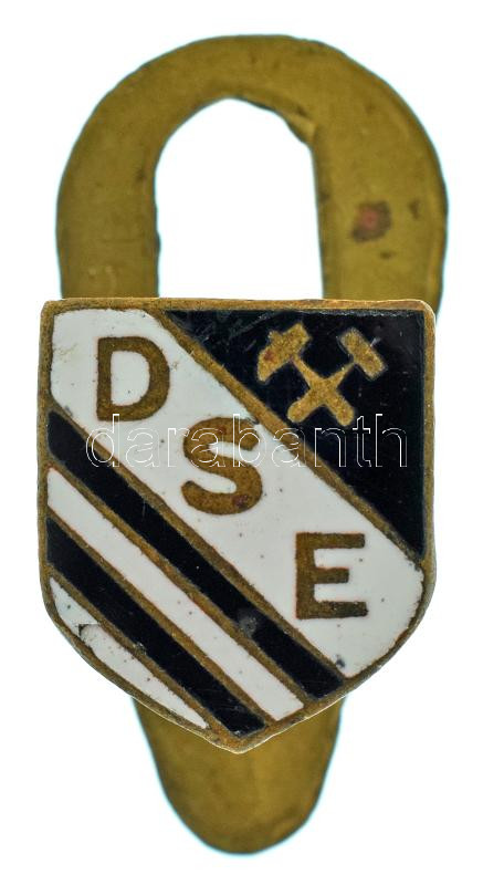 DN "DSE" (Dorogi Sport Egyesület?) zománcozott bronz jelvény, "MORZSÁNYI BUDAPEST ESKÜ U. 6." gyártói jelzéssel a hátoldalán (10x12mm) T:AU, pici zománchiba