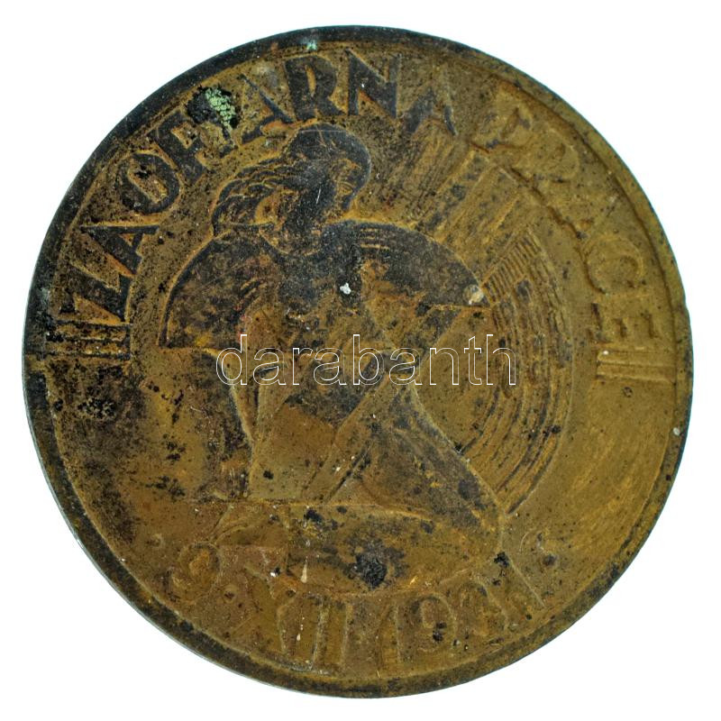 Lengyelország 1931. "Za Ofiarna Prace 9. XII. 1931. (Az elkötelezett munkáért, 1931. december 9.)" bronz kitüntető jelvény csavaros hátlappal, a csavaron "ST. REISING WARSZAWA" gyártói jelzéssel (30mm) T:XF patina