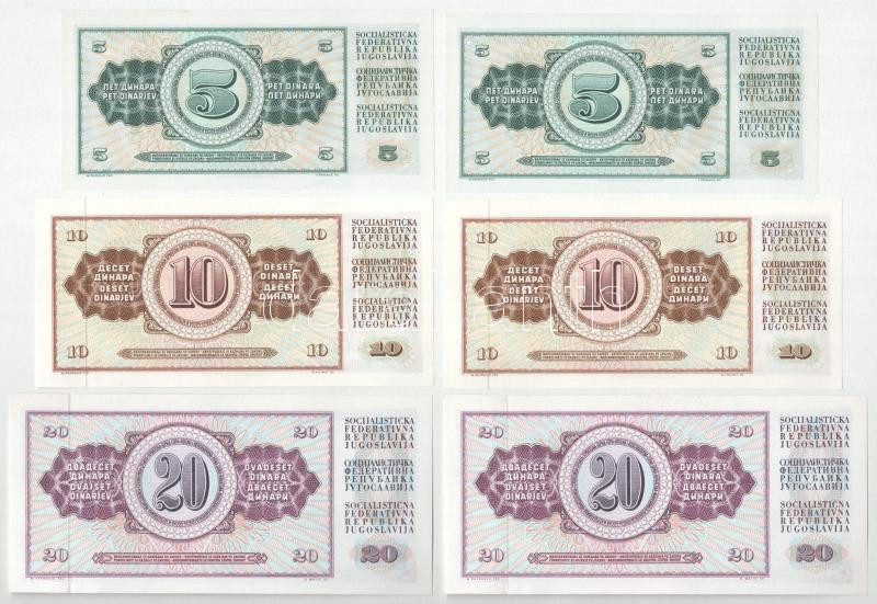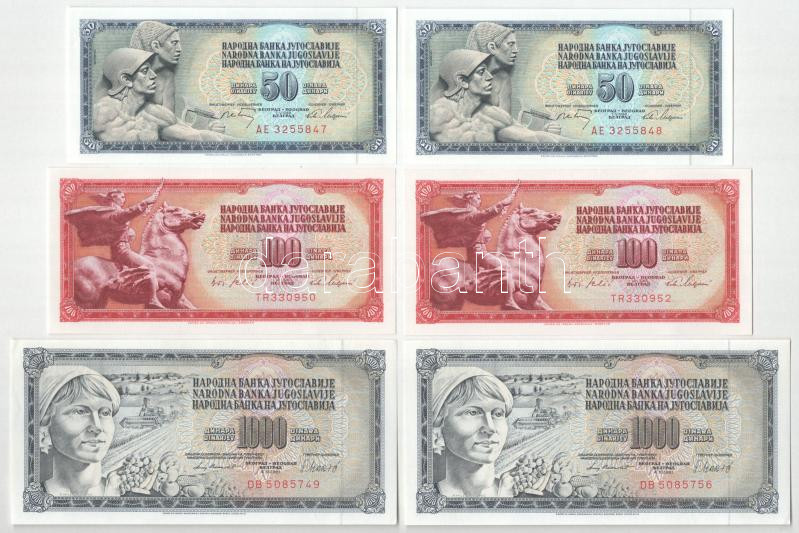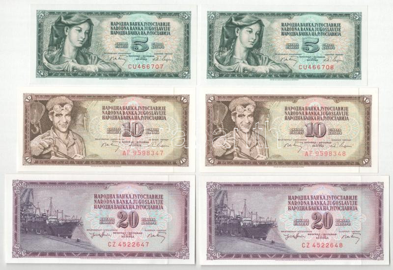 Leírás: Jugoszlávia 1965. 100D (2x) egyugrásos sorszámkövetők + 1968. 5D (2x) sorszámkövetők + 10D (2x) sorszámkövetők + 50D (2x) sorszámkövetők + 1974. 20D (2x) sorszámkövetők + 1981. 1000D (2x) közeli sorszámok T:UNC,AU