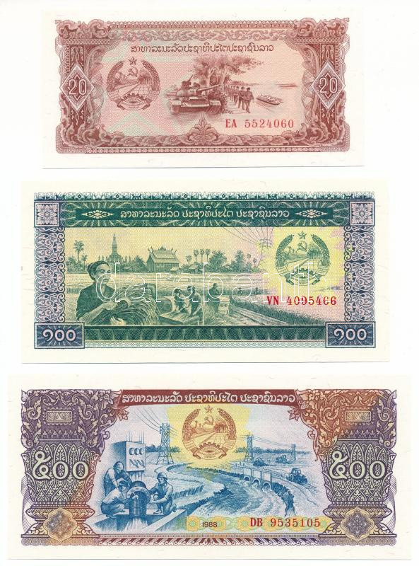 Laos 1979-1988. 20 Kip + 100 Kip + 1988. 500 Kip C:UNC