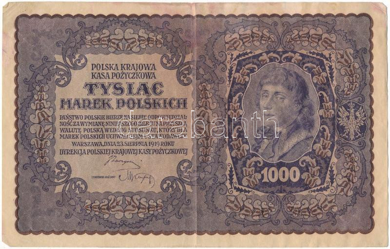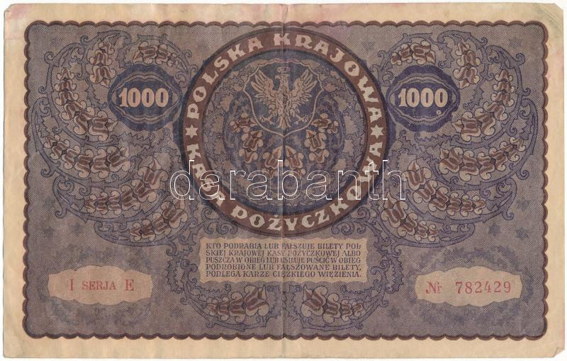 Leírás: Lengyelország 1919. 1000M vízjeles papíron "E 782429" T:F erős papír