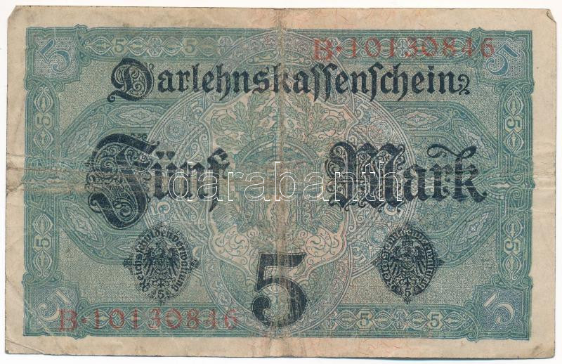 Leírás: Német Birodalom 1917. 5M "8 jegyű sorozatszám" T:F,VG German Empire 1917. 5 Mark "8 digit serial" C:F,VG Krause P#56