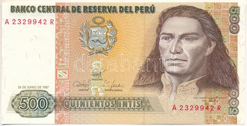 Peru 1987. 500 Intis &... https://www.darabanth.com/hu/514-Filatelia-kepeslap-numizmatika-mutargy-konyv-papirregiseg-ekszer-aukcio/515.0/Numizmatika/Kulfoldi-bankjegyek~1316/Peru-1987-500I-A-2329942-TUNC-AU3Cbr-3E-Peru-1987-500-Intis-A-2329942-CUNC-AU3Cbr-3E-Krause-~II3452563