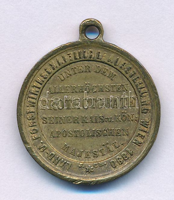 Ausztria 1890. "Ferenc József - Mezőgazdasági és Erdészeti Kiállítás Bécs 1890" "FRANZ JOSEF I KAISER VON ÖSTERREICH ETC. / LAND-U. FORSTWIRTSCHASFTL AUSSTELLUNG WIEN 1890" aranyozott bronz emlékérem, füllel. (20mm). Szign.: J. CH. (J. Christlbauer) T:XF