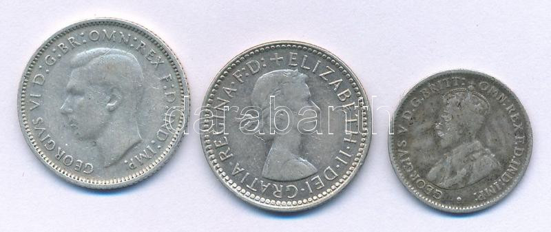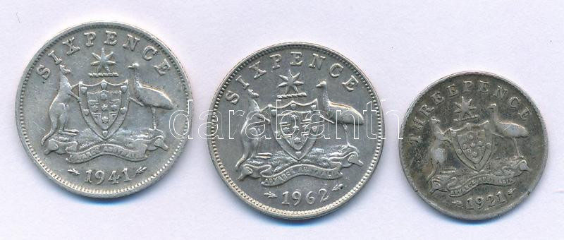 Ausztrália 1921. 3p Ag "V. György" + 1941. 6p Ag "VI. G... https://www.darabanth.com/hu/514-Filatelia-kepeslap-numizmatika-mutargy-konyv-papirregiseg-ekszer-aukcio/515.0/Numizmatika/Kulfoldi-fem-es-ezustpenzek~1317/Ausztralia-1921-3p-Ag-V-Gyorgy-plus-1941-6p-Ag-VI-Gyorgy-plus-1962-6p-Ag-II-Erzsebet-TXF-~II3479286