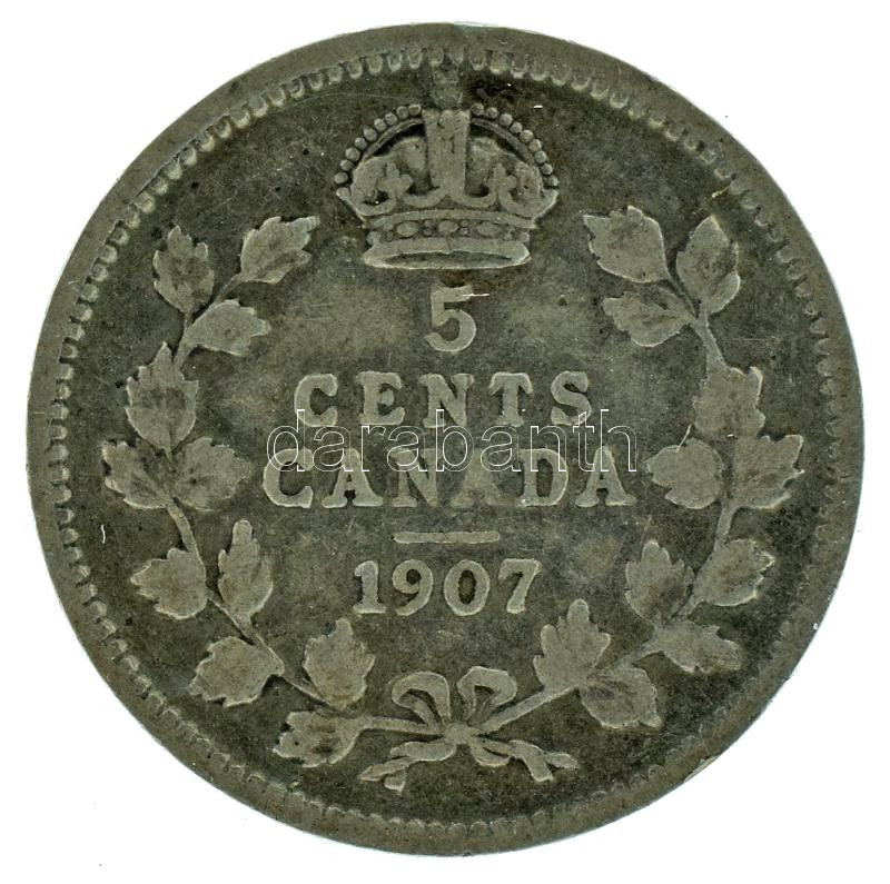 Canada 1907. ... https://www.darabanth.com/hu/514-Filatelia-kepeslap-numizmatika-mutargy-konyv-papirregiseg-ekszer-aukcio/515.0/Numizmatika/Kulfoldi-fem-es-ezustpenzek~1317/Kanada-1907-5c-Ag-VII-Eduard-1-13g-TVF3Cbr-3E-Canada-1907-5-Cents-Ag-Edward-VII-1-13g-C~II3463014