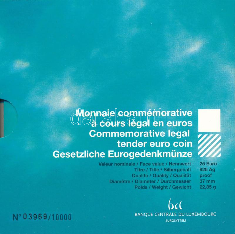 Luxembourg 2004. 25 Euro Ag "Elections to the European Parliament" in original, decorative, serial numbered packing C:PP