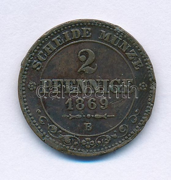 Leírás: Német Államok / Szászország-Albertine 1869B 2pf Cu T:XF,VF ph. German States / Saxony-Albertine 1869B 2 Pfennig Cu C:XF,VF edge error Krause KM#1217