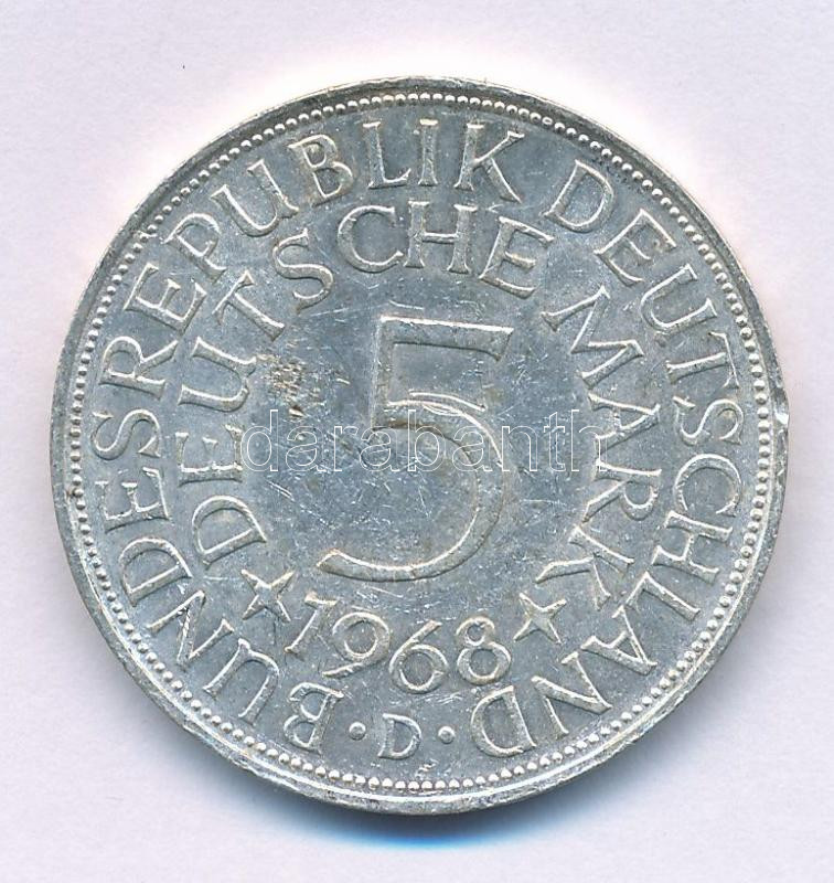 Német Szövetségi Köztársaság 1968D 5M Ag kapszulában, tanúsítvánnyal. T:XF