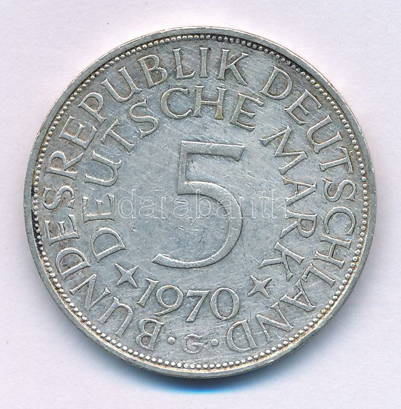 Federal Republic of Germany 1970G 5 Mark Ag in capsule, with certificate. C:XF patina