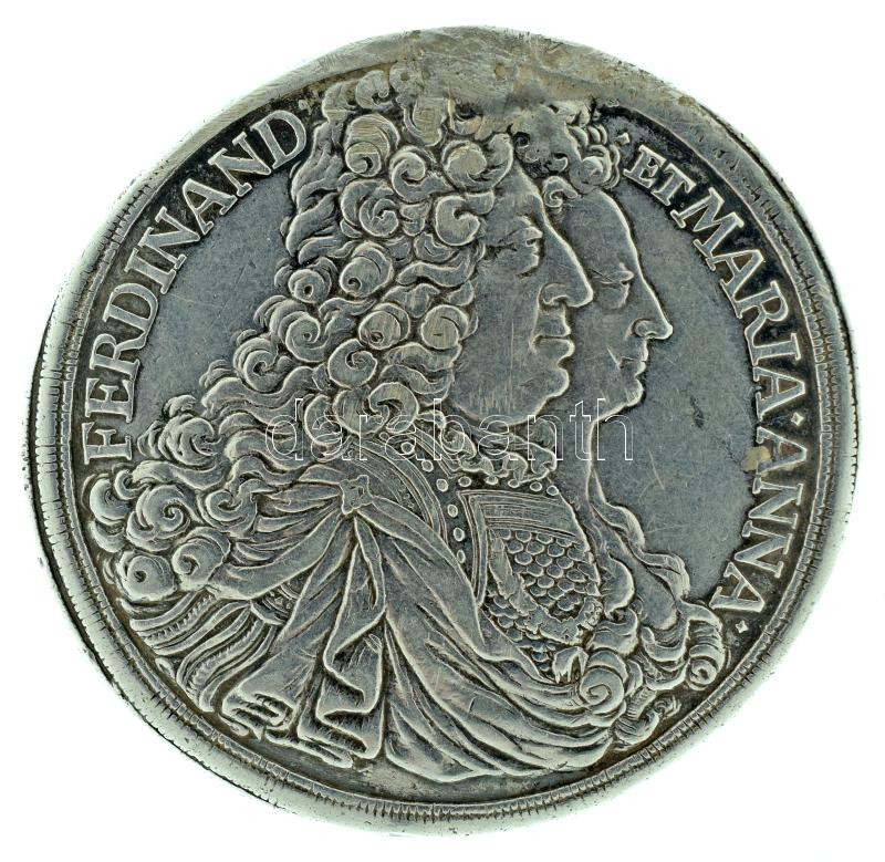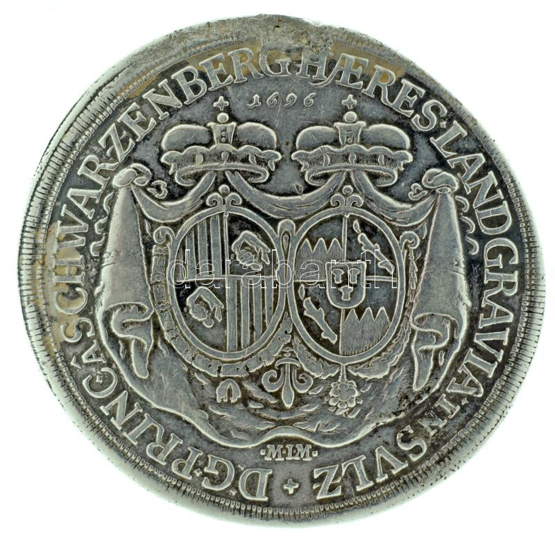 Német államok / Schwarzenbergi Hercegség 1696MIM 1T "Ferdinánd Vilmos és Mária Anna" Ag Körmöcbánya (28,80g). "D G PRINC A SCHWARZENBERG HAERES LANDGRAVIA IN SVIZ / FERDINAND ET MARIA ANNA" T:XF,VF durva fülnyom