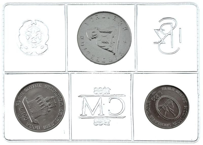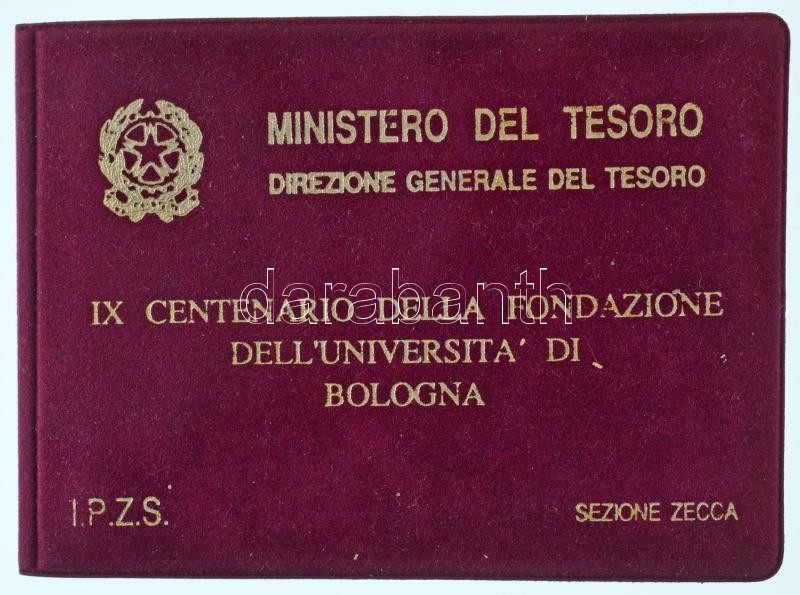 Olaszország 1988. 100L Ag "900 éves a Bolognai Egyetem" + 200L Ag "900 éves a Bolognai Egyetem" + 500L Ag "900 éves a Bolognai Egyetem" olasz nyelvű tanúsítvánnyal, műanyag tokban T:UNC